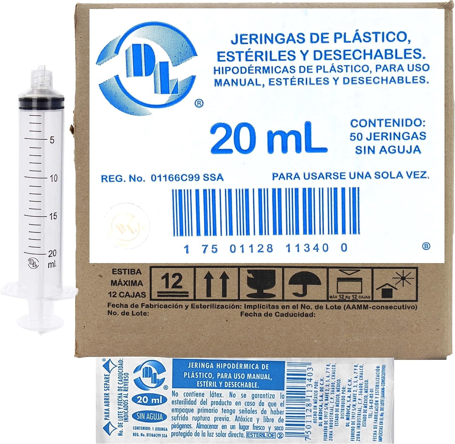 Jeringas De Plástico Sin Aguja Con Pivote Tipo Luer Lock Estériles Y Desechables. Capacidad: 20 Ml Escala Graduada En Ml Divisiones De 5.0 Y Subdivisiones De 1.0 Envase Con 50 Piezas