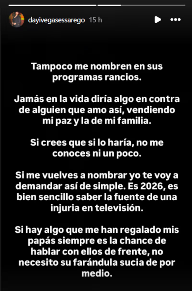 Dayane Vega sacó las garras por su padre tras los rumores de una supuesta internación hospitalaria, calificando el trabajo de los medios nacionales como “farándula sucia” en medio del complejo escenario judicial que enfrenta el artista.