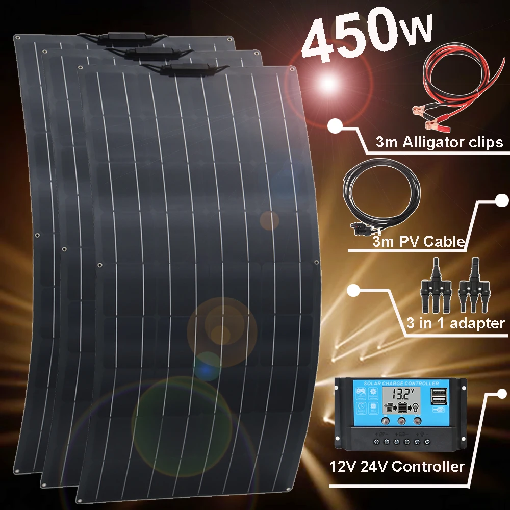 Nuevo Kit De Módulo Fotovoltaico (Panel Solar) Monocristalino Con 100w De Potencia En 12v, Incluye Controlador De Carga Epever De 20Amp 12v Y Salida Para Cargar Con USB Mas Un Par De Conectores MC4 Hembra Y Macho PV Accesories