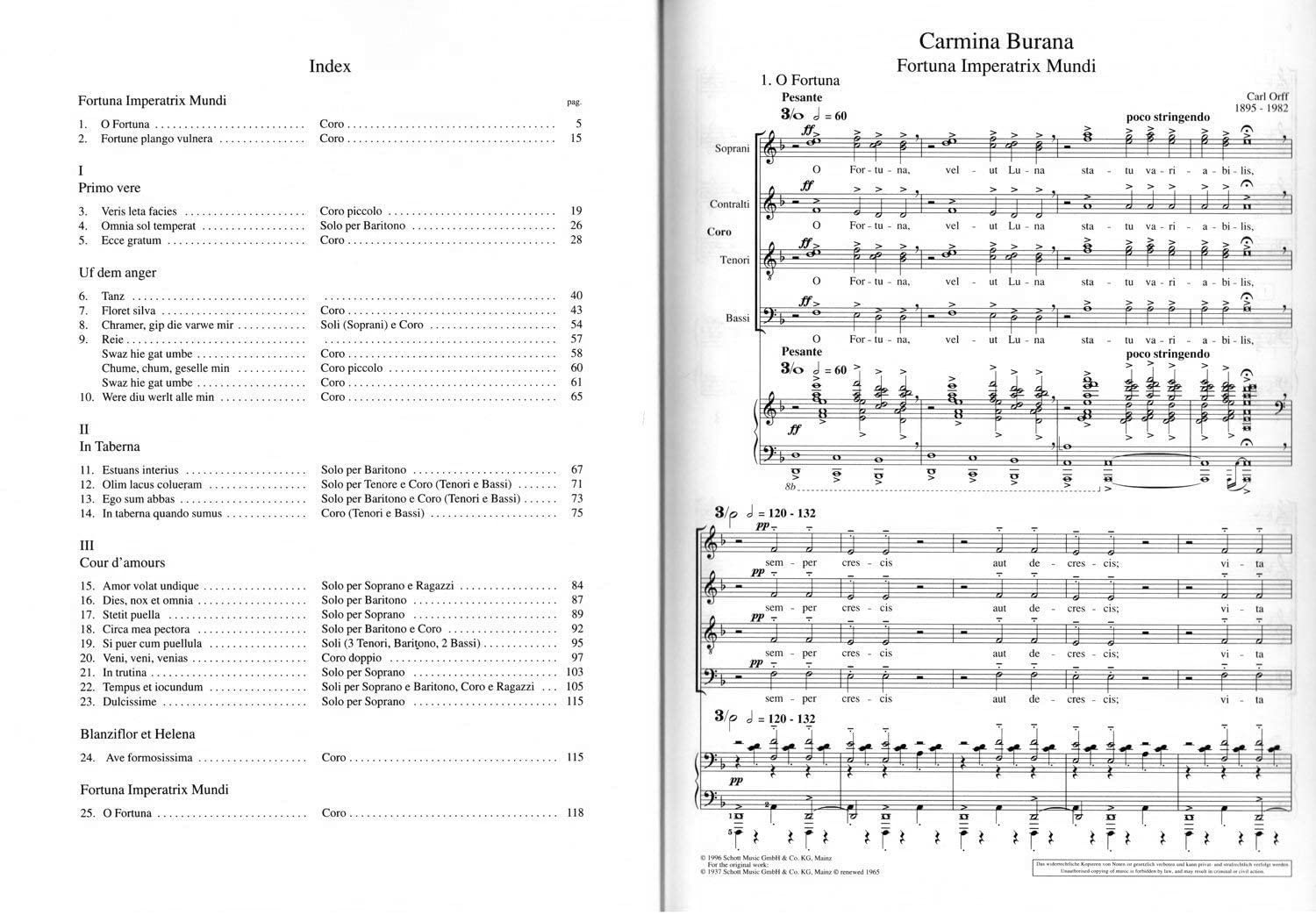 In 1937, the Frankfurt Opera adds Carmina Burana to its repertoire. The premiere takes place on Tuesday, 8 June. The reactions to the performance are overwhelmingly positive. At a time of general artistic upheaval and the search for new musical styles, many consider the work to be 'of utmost importance for the development of modern music.' Adolf Kolb: Radio of the Week: Broadcasts from 6... Carmina Burana Cantata Carmina Burana Cant Iones Profanae – Uraufführung : Extension 8 Juin 1937 Städtische Scènes Francfort/M – PIANO – [Notes/sheetm Usic] – Avec Cœur Note Pince Partitura Latín Piano Coro 'apatezca Duración: 65' 0 · Composición año: 1936 · dificultad: 3 · 128 páginas – broschur Ì 3 también Bass claro., ) · 2 · KFG., – 4 · 3 · 3 · 1 – P., S., (trgl · 2 Ant., Magenta · Ì 4 Beck., [y] · tamt., brasileño · 3 Glock., · röhrengl., · · 2 KL., tr · gr., Ì transparente · kast. Orquesta ocupación: 3 (2 y 3 también PICC. O Fortuna by Carl Orff » Piano Sheet Music , Shop now Editorial: Schott Music · Número de pedido Nº: ED 2877 · ISMN: 979 – 0 – 001 – 04014 – 3 – · ISBN: 978 – de 3 7957 – 5338 – 2 · Con colorido Bingham ordenador paréntesis · La Color de la abrazadera para ordenador puede variar ) · 3 (1 también es de borrar, 2 U. Ocupación: Solicut (stbar), Coro mixtos (SATB), niños coro y orquesta · Edición: Piano extracto · idioma: latín – mittelhochdeutsch – altfranzösisch Esperando permisoPermitir el acceso al micrófono para activar la búsqueda por voz View Carmina Burana Tickets. Secure Carmina Burana Resale Tickets Online Today. Order Theater, Musical & Show Tickets. Last Minute Instant Download Tickets Available. Compare Prices on the Worlds Largest Ticket Marketplace. Tickets On Sale Today And Selling Fast, Secure Your Seats Now. Spain Tickets 2026 Compra online electrónica, moda, hogar, libros y mucho más a precios bajos. Consigue ofertas en artículos similares con Amazon. No hemos encontrado resultados para Carmina Burana Cant Iones profanae – uraufführung : Extension 8 juin 1937 städtische Scènes Francfort/M – PIANO – [Notes/sheetm usic] – avec cœur Note Pince. Prueba con las sugerencias que aparecen más abajo o introduce una consulta nueva. Sugerencias Ì 3 también Bass clara., ) · 2 · kfg., – 4 · 3 · 3 · 1 – P., S., (trgl., · 2 ANT., cymb., · Ì 4 Beck., [y] · tamt., · 3 Glock., · röhrengl., · brasileño., · 2 KL., TR., · gr., tr., Ì · KAST., · carraca