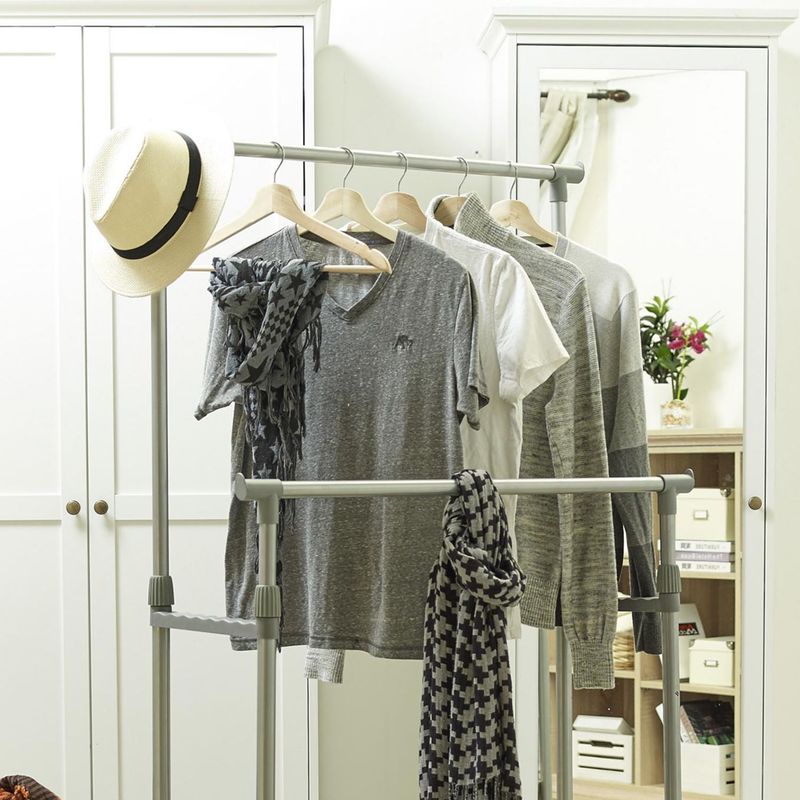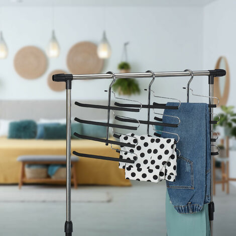 Relaxdays Perchas Para Trajes, Varilla Pantalones, Gancho Colgar Falda, Colgador Metal Y PVC, 19x45x3,5cm, Gris Claro, 10 Unidades
