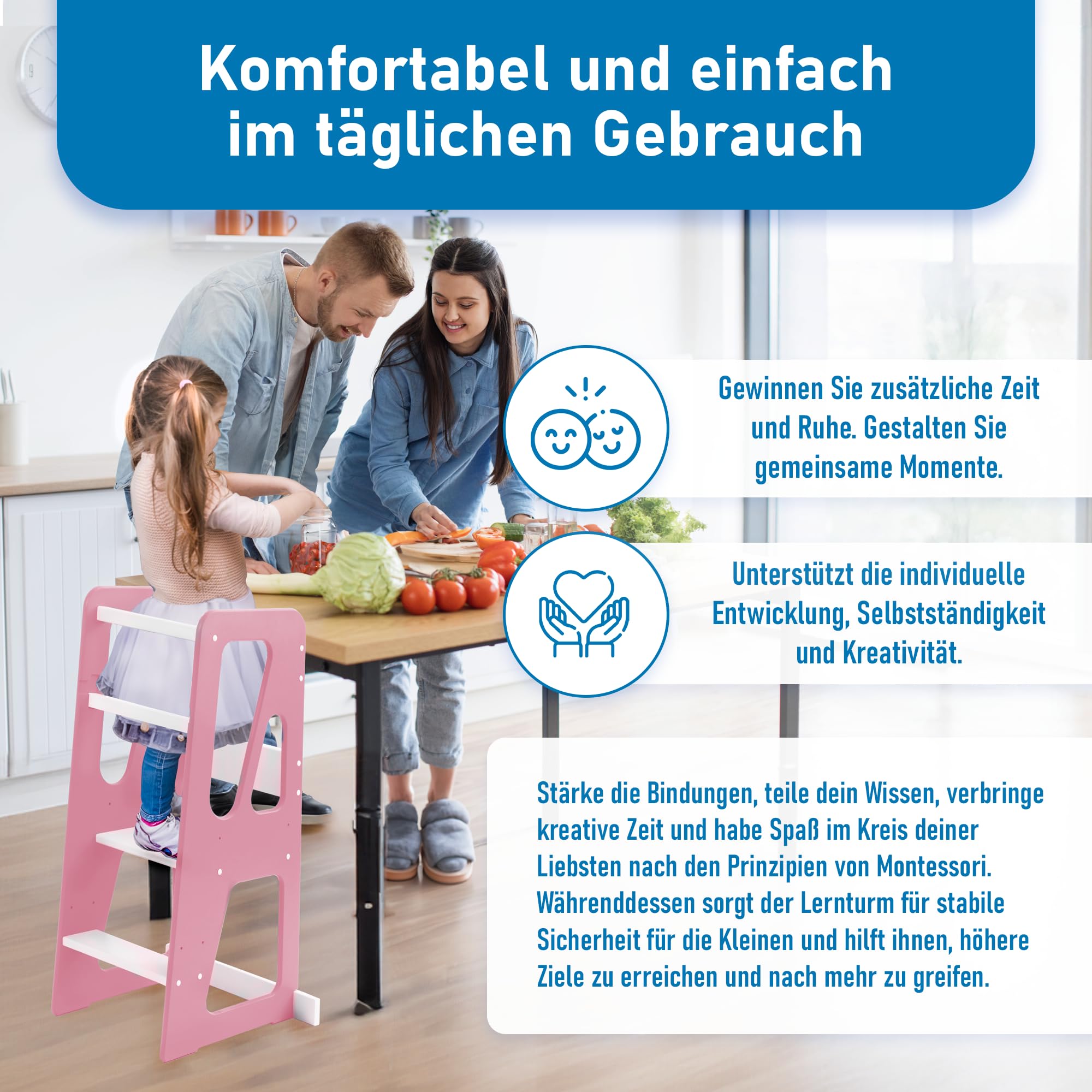 Taburete Madera Torre De Aprendizaje Ajustable Torre De Aprendizaje Montessori Para Niños 1 Año - Madera Maciza FSC, Antivuelco, 3 Alturas Ajustables, Soporta 50 Kg Altura Regulable 3 Niveles Juguetes Montessori 1 Años