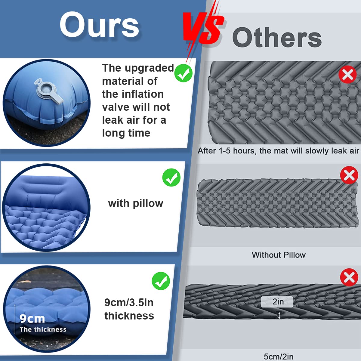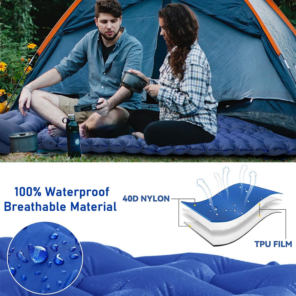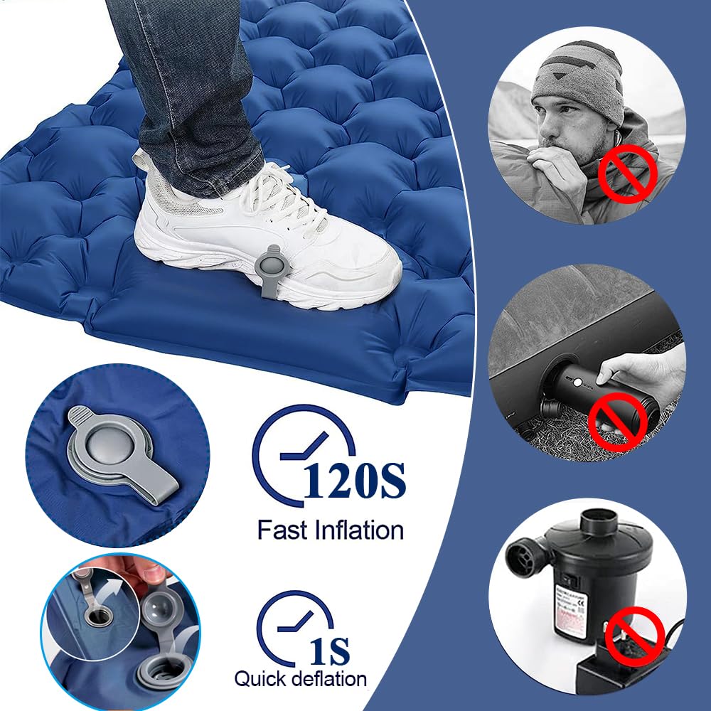Simplemente empaca al tamaño de una botella de agua fina, cabe fácilmente en tu mochila y llévala contigo, ahorra espacio. Ligero y portátil: disfruta del colchón de aire de camping más ligero sin sacrificar la comodidad. Aiuuee isomatte Ultralight son muy ligeros (individual: 850 g, doble: 1450 g). Pasos de ventilación: abra la válvula de escape y enrolle la colchoneta para vaciar el aire. El revestimiento de TPU hace que sea resistente al agua y fuerte sellado, incluso en superficies húmedas y frías. Te ofrece una experiencia al aire libre... Tamaño: Individual: 196 x 68 x 9 cm. Te ofrece una experiencia al aire libre duradera, suave y cómoda. Peso: Individual: 850 g Doble: 1450 g Embalaje: película retráctil Contenido del paquete: 1 almohadilla para dormir con bomba incorporada. Bomba de pie integrada: la esterilla isomat hinchable está equipada con una bomba de pie integrada única, que es más cómoda, ahorra trabajo e higiénica que soplar con la boca o presionar con las manos, eliminando la vergüenza de soplar. Colchoneta De Camping Inflable HiiPeak Para 2 Personas Bomba De Pie Integrada FIUHP Esterilla Autoinflable Para Camping, Para 2 Personas Esterillas Autoinflables Para Camping Más gruesa y cómoda: nuestra esterilla isomat autoinflable para 2 personas es más gruesa y ancha que otros productos similares., El grosor de 3., 5 pulgadas lo mantiene alejado del suelo húmedo y las rocas duras. Perfecto para senderismo, camping, mochila, viajes, escalada, senderismo y otras actividades al aire libre. No te preocupes por que la almohada se caiga o te olvides de llevar la almohada mientras duermes, lo que provocará una mala noche de sueño. En la parte superior de la almohadilla para dormir hay una almohada suave. El tamaño de la colchoneta de camping (192 x 125 x 9 cm/75,6 x 49,2 x 3,5 pulgadas) es muy cómodo para la mayoría de las personas, además, la colchoneta de aire es suave y garantiza noches agradables y máxima comodidad para dormir durante los viajes. Ventajas de la colchoneta inflable automática: 1., Perfecto para picnic, camping, senderismo, diseño ergonómico para aliviar la presión de la espalda y el cuello, y te ofrece una comodidad inigualable para la experiencia de sueño más ideal., 2., Ultraligero y compacto: todo el paquete es del tamaño de una botella de agua. Especificaciones del producto: Nombre: colchón para dormir. Probado hasta 200 kg cuando está inflado y no se vacía durante el sueño. Adecuado para mochileros, senderismo, viajes, uso doméstico y uso de oficina, coche, etc. Se infla solo en minutos gracias a su bomba de pie integrada, y alcanza unos generosos 10-12 cm de grosor, suficiente para aislarte del frío y la humedad del... Material: nailon 40D grueso + revestimiento de TPU.