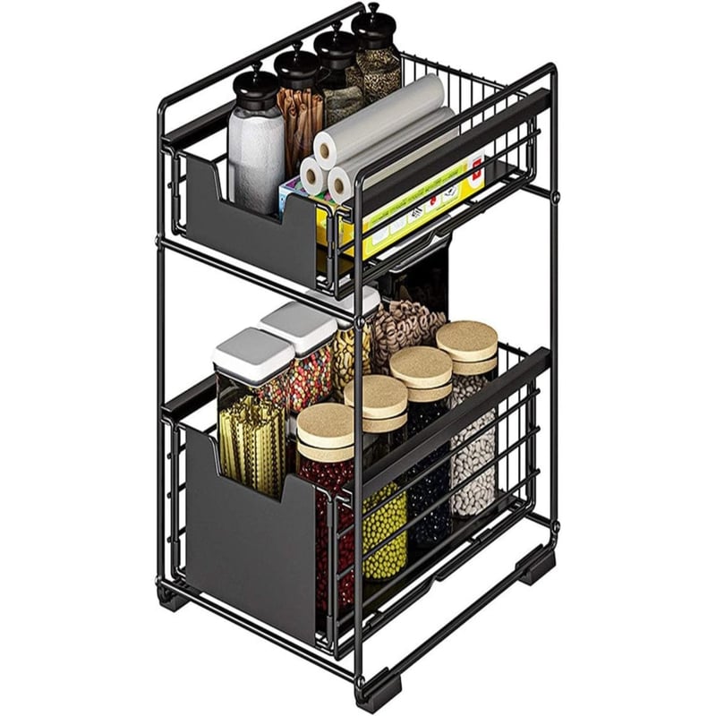 [Ajustable] Gracias a los 4 agujeros del marco, puede ajustar las 2 cestas a la altura adecuada según tu espacio. 1 x Bolsa con herramientas de montaje, 1 x Manual de uso [Versátil] Coloca esto organizador en tu armario para guardar tus cosas, pon esta estantería debajo de tu fregadero para los productos de limpieza o utiliza estos estantes antioxidante en tu baño para los jabones y productos de cuidado Fácil de limpiar ? Los tableros de plástico PP son fáciles de limpiar con un paño. 2 prácticos cajones: Con las cestas extraíbles, podrás acceder fácilmente a tus objetos. El organizador de cocina con 2 niveles aprovecha al máximo el... Si el espacio no es un problema, déjelo en la encimera para mantener las especias en buen estado y al alcance de la mano., Brillante, ¿eh? ., ., ., también un cuarto de baño ordenado: Si también tiene una gran demanda de espacio bajo el lavabo en su cuarto de baño (probablemente sí), entonces haga más espacio bajo el lavabo con este organizador antioxidante. Peso del producto: 1,6 kg, Máx. Con 2 cestas en el interior del marco: 21 x 36,5 x 27,2 cm (Profundo x Ancho x Alto) capacidad de carga estática de cada cesta: 10 kg Estante Organizador Bajo Fregadero Sobre Mesada 2 Niveles | Cuotas sin interés Organizador Cocina Extraíble SONGMICS Paquete De 2 Estantes De Cocina Y Organizador De Gabinete Extraíble, Apilables, Organizadores Debajo Del Fregadero Con Cestas De Almacenamiento, Para Cocina Y Baño UKCS02NW Y UKCS017E01 Organizador Bajo Fregadero Con una cesta pequeña en la parte superior: 21 x 36,5 x 31,5 cm (Profundo x Ancho x Alto) [Tan práctico] Con 2 cestas extraíbles, tus cosas son fácilmente accesibles. [Qué hay en la caja] Un estante de acero de 2 niveles. [Fácil de montar] Sigue las instrucciones y utiliza la herramienta suministrada para montar cada pieza numerada y esta estantería bajo el fregadero estará lista en un momento Dimensiones de la cesta grande: 19 x 36,5 x 10 cm (Profundo x Ancho x Alto) ¿Ajustado? Gracias a los agujeros en el marco, estas dos cestas son ajustables en altura para tus cosas de diferentes tamaños. Manten tu cocina feliz: Puede que le resulte difícil preparar comidas en medio del caos. Contenidos del paquete: 1 x Organizador de cocina Los 4 pies de plástico antideslizantes evitan los arañazos y aumentan la estabilidad. Ajustable] Gracias a los 4 agujeros del marco, puede ajustar las 2 cestas a la altura adecuada según tu espacio. También puedes apilar varios estantes idénticos para ahorrar aún más espacio. [Tan práctico] Con 2 cestas extraíbles, tus cosas son fácilmente accesibles. No hace falta rebuscar Esto organizador extraíble de 2 niveles le ayudará.