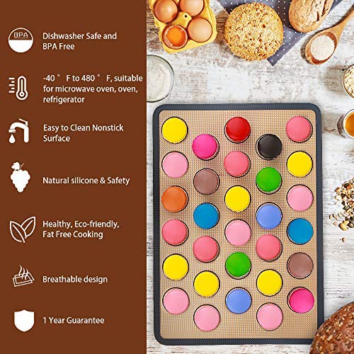 Enróllela después de secarla para guardarla fácilmente Tapete de silicona antiadherente para hornear, Lámina de horno para 【Imprescindible en la cocina】Ideales para la mayoría de las ocasiones, nuestros tapetes de silicona están hechos de silicona 100% de grado alimenticio (libre de BPA) y son una herramienta indispensable para cualquier cocinero o repostero apasionado. Material: Fibra de vidrio de siliconaLista de empaque:Esterilla para hornear (2 unidades)Tamaño:Tamaño expandido: 42 x 29,5 cm, 116 g Diseño resistente al calorLa esterilla para macarrones está hecha de fibra de vidrio de silicona y se puede usar en un rango de temperatura de -40 a 250 °C, calentando uniformemente. 【Tapete de Silicona Multifuncional】Nuestros tapetes para hornear transfieren el calor uniformemente a los alimentos. Los alimentos no se pegan al tapete al preparar pan u hornear. Es apta para lavavajillas: simplemente lávela con agua tibia y jabón y séquela al aire. También son perfectos como regalo de Acción de Gracias y Navidad Además de su superficie antiadherente, proporcionan una distribución uniforme del calor. Además, utiliza un patrón de ribetes uniformemente espaciados en el tapete para macarrones para lograr resultados de horneado uniformes y consistentes Tapete Horno Silicona Silpat Perfect Macaron - Tapete De Silicona Antiadherente Para Hornear, 11-5/8 Pulgadas X 16-1/2 Pulgadas, Naranja Rollable Fácil Limpieza Muy rápido y fácil, olvídese de perder tiempo limpiando bandejas de horno grandes. Compra Juego de Tapete de silicona para hornear macarons con 2 (42 x 29,5 cm), antiadherentes para macaron, 6 boquillas de pastelera, 2 mangas pasteleras... A 250 °C, la esterilla no produce olor ni humo y durará años Rango de temperatura aplicable: -40-250 °C. 【Fácil de limpiar y guardar】Al usar la esterilla antiadherente para amasar, su encimera siempre estará limpia. 【Antiadherente y resistente al calor】La superficie de nuestra esterilla de silicona para hornear es antiadherente. La esterilla de silicona para repostería soporta temperaturas de -40 a 250 °C, permite hornear todo tipo de pan y es ideal para horno/microondas El molde de horneado está hecho de telas duraderas de alta calidad. · No pegajoso y antideslizante