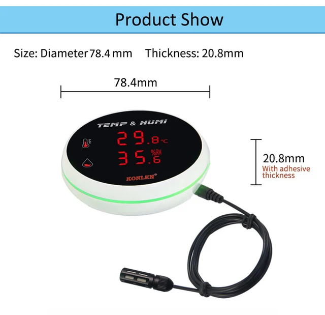 Tuya-Sensor De Temperatura WiFi Para Interior, Higrómetro Inteligente Con Pantalla LCD, Detector De Humedad, Termómetro Compatible Con Alexa Y Google Home... Termometro Wifi Tuya-Sensor De Temperatura Y Humedad WiFi Diseño de monitoreo en tiempo real: los sensores de primera calidad garantizan una alta precisión de los datos de medición, ayudan a monitorear con precisión la temperatura y la humedad interiores, creando un entorno de vida cómodo sin importar si hace calor en verano o frío en invierno Especificaciones:Nombre del producto: Sensor WiFi de temperatura y humedadHumedad de trabajo: 0100%RHTemperatura de trabajo: -1960(-2,2-140)Precisión de medición de temperatura: 0,3 (interno)Error de temperatura de la línea de detección externa: 1CPrecisión de medición de humedad: 2%Rango de medición del brillo: 0100%Voltaje de funcionamiento: CC 5 VCorriente de reposo: 30 mAEspecificaciones de la batería: 3,7 V/500 mAhTiempo de carga: 2 horasTiempo de uso de la batería incorporada: 4 horas (completamente cargada)Sonda de temperatura: 1/3 metroEstándar Wi-Fi: IEEE 802., 11 b/n/g 2,4 GHzTamaño: 86*86*22,8mmNombre de la aplicación: Tuya Smart o Smart LifeEl paquete incluye:1 * sensor inteligente de temperatura y humedad1 * manual de usuarioNotas:1., Actualización del firmware del dispositivo: la sonda externa puede mostrar el punto decimal (0,1C)., 2., Después de conectar el cable del sensor de temperatura, debe calibrar manualmente la temperatura del sensor usted mismo. Este sensor tiene una sonda de temperatura (opcional), que puede probar exactamente la temperatura del agua/pecera, etc., Fue utilizado ampliamente. Sensor de temperatura y humedad con pantalla Digital WiFi Tuya, no requiere concentrador. Sensor Temperatura Humedad Wifi Tuya Sensor De Temperatura WiFi Con Sonda Externa Impermeable Sensor Tuya Con Pantalla LCD