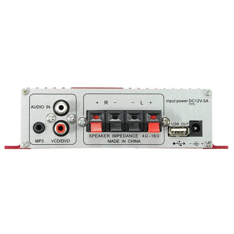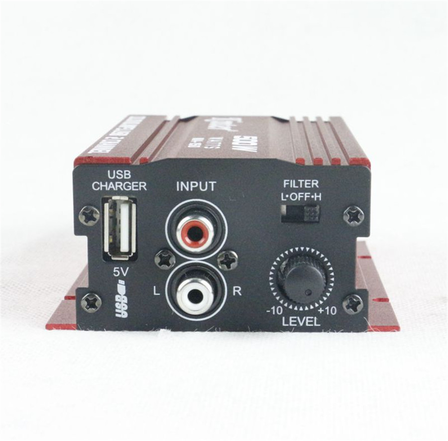 Importado de alta calidad del amplificador de potencia IC, sonido HIFI. ST-838 2.1CH Amplificador de audio HiFi RMS 20Wx2 40W Este amplificador de potencia de alta fidelidad de coche es un amplificador de potencia profesional de dos canales de alta potencia. Compatible con tarjeta USB, reproductor de MP3, FM, tarjeta SD. Este amplificador es adecuado para coche, motocicleta, barco o uso doméstico, y se instala fácilmente Soporta tarjeta USB, reproductor de MP3, FM, tarjeta SD Compatible Moto Barco Casa DollaTek 12V Mini 2-Canales Hi-Fi Amplificador De Audio Estéreo Digital Estéreo Digital USB SD FM Este amplificador de potencia de coche es un amplificador de potencia profesional de dos canales de alta potencia. Soporta tarjeta USB, reproductor de MP3... Pantalla dinámica colorida del nivel del LED., FM87., 5 MHz - FM108., 0 MHz Este amplificador es conveniente para el coche, la moto, el barco o el uso casero, e instala fácilmente. Con la función de radio de FM, exhibición digital. Su alta calidad lo hace más durable., Especificación:1., Pantalla: Pantalla digital de modo de sonido2., Formato: MP3 / FM3., Ayuda: Tarjeta de USB / SD / MMC4., Voltaje de entrada: DC 12V5., Potencia de salida: RMS 20W + 20W 1KHz6., Frecuencia de radio FM Rang: 87,5 ~ 108MHz7., Respuesta de frecuencia: 20Hz - 20kHz8., Distorsión armónica: 9., SNR: 85dB10., Alto control: 12dB + - 10KHz11., Control de graves: 12dB + - 100Hz12., El nivel de la señal: 220MV 47K13., Lector, formato del U-disco: MP3 FM14., Dimensiones del producto (L x An x Al): 6., 4 x 4., 3 x 1., 8 pulgadas (162 x 110 x 45 mm)*** Nota: Este amplificador no incluye el adaptador de corriente (12V 3A) ***El paquete incluye:1x amplificador estéreo1x control remoto1x Manual del usuario Es compatible con USB, MP3, FM, SD. Con interfaz USB / SD, puede reproducir archivos de audio MP3 directamente, entradas externas RCA de alta calidad para conectar CD / DVD u ordenador y otras fuentes