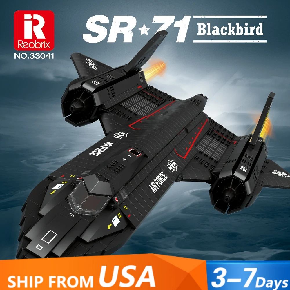 Reobrix SR-71 Blackbird Reconnaissance Fighter Jet Building Set, 33041 Juegos De Construcción De Aviones Militares, Decoración Del Hogar O Colección, Juguetes De Avión De Aviación, Regalos Para Adultos Y Fanáticos Militares