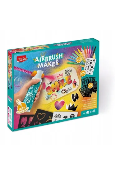 Sistema de aerógrafo seguro y fácil de usar diseñado específicamente para manos pequeñas, permitiendo a los niños crear diseños profesionales sin complicaciones ni riesgo de accidentes. ¡Tu hijo se convertirá en un graffita! Estimula el desarrollo artístico y la concentración mientras los niños experimentan con técnicas de arte profesional, mejorando su coordinación y habilidades motoras finas de manera divertida. hu/?s=airbrush&post_type=product&dgwt_wcas=1 #Maped #MapedCreativ #TomorrowIsInYourHands #AirBrushMaker #graffiti. A MAPED CREATIV Airbrush... Colorea Tu Unicornio Juego Maped Creativ Airbrush Maker Set Creativo Con Stencils Más información del producto Recharge feutres et accessoires Pastel pour cofet aérographe Airbrush Con la ayuda de sus 5 tablas de plantillas, sus 12 rotuladores de selva y 24 tablas de pegatinas, podrá etiquetar su nombre en su pequeño tablero o en sus 5 hojas Presionar el gatillo Una vez que se inserta el fieltro, solo hay que usar las plantillas disponibles para comenzar a dibujar como un grabador. Simplemente inserte el fieltro en la punta de plástico y presione el gatillo. Con la ayuda de sus 5 tablas de plantillas, 12 rotuladores de selva y 24 tablas de pegatinas, podrá etiquetar su nombre en su pequeño tablero o en sus 5 hojas A incluidas en el paquete. Una nueva forma de colorear con Airbrush Maker de Maped Creativ El niño elige un fieltro, lo mete en el pulverizador Airbrush., ., ., y magia, podrá hacer dibujos originales y descubrir una nueva forma de colorear. Incluye múltiples plantillas y stencils temáticos con diseños variados como corazones, estrellas, animales y formas geométricas para inspirar la creatividad y facilitar creaciones únicas. Los pasos para un buen uso del aerógrafo Maker Inserte el fieltro en el pulverizador Simplemente inserte el fieltro en la punta de plástico y presione el gatillo.