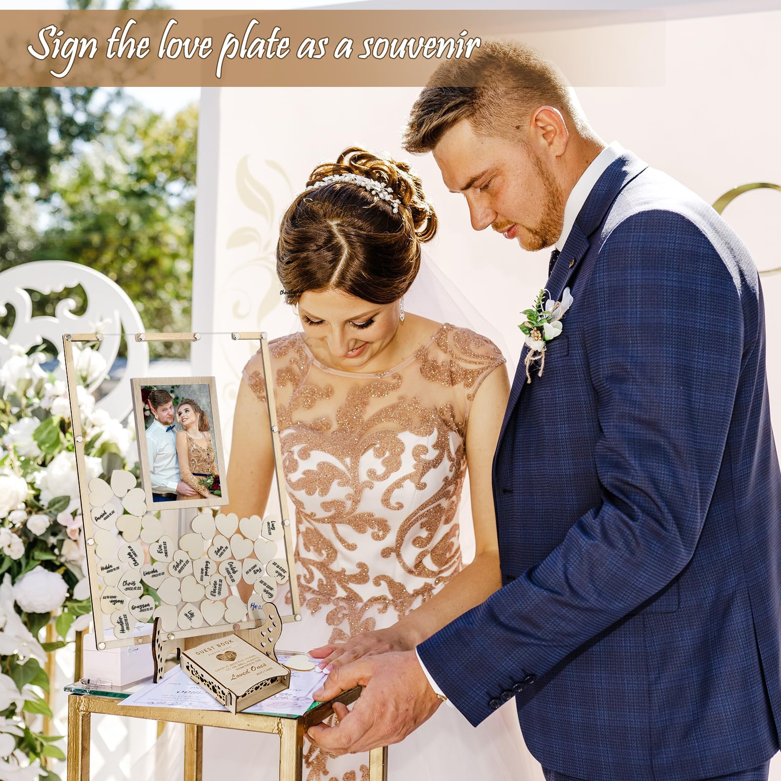 Este Juego De Libros De Invitados De Boda (9.1 X 6.7 In, 120 Páginas) Incluye Una Caja Colorida, Un Libro De Visitas Para Bodas, Un Cartel De Mesa De Recepción De Boda, Un Bolígrafo De Inicio De Sesión Y Cuatro Calcomanías De Fiesta De Boda
