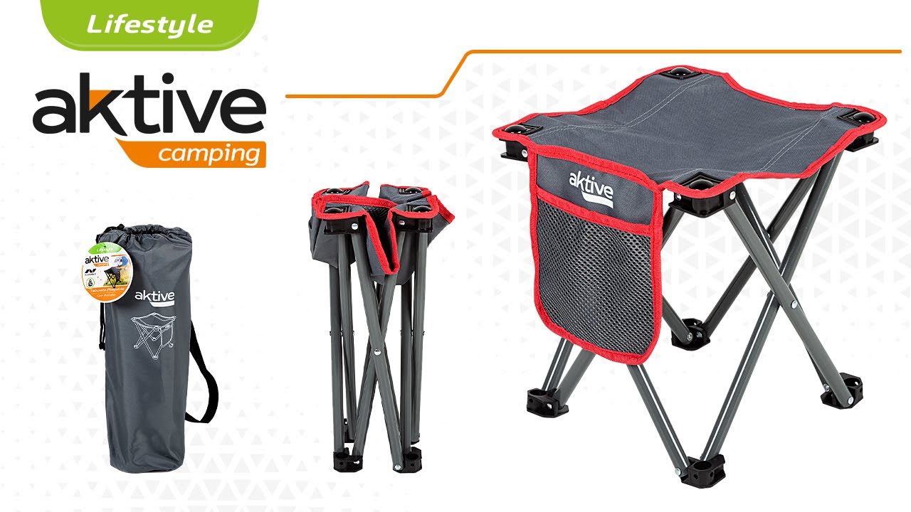 AKTIVE 63069 Taburete Plegable Camping, Resistente, Color Negro, Peso Máximo Soportado De 150 Kg, 41x33x39 Cm, Incorpora Asa De Mano, Plegado Compacto, Fabricado En Material PP