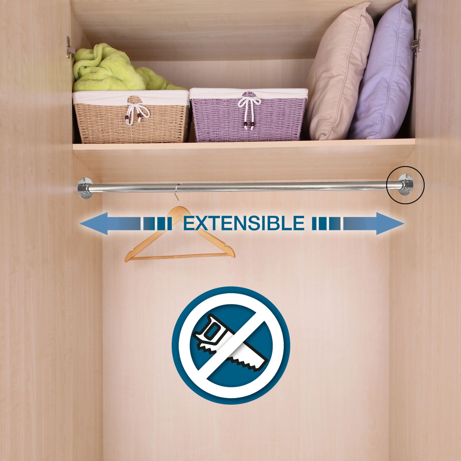 Barra Extensible Para Armario De 32 Mm, Color Plateado, Resistente, Barra De Acero Inoxidable Con Soporte Y Tornillos (74-160 Cm) ; Material. Acero Inoxidable