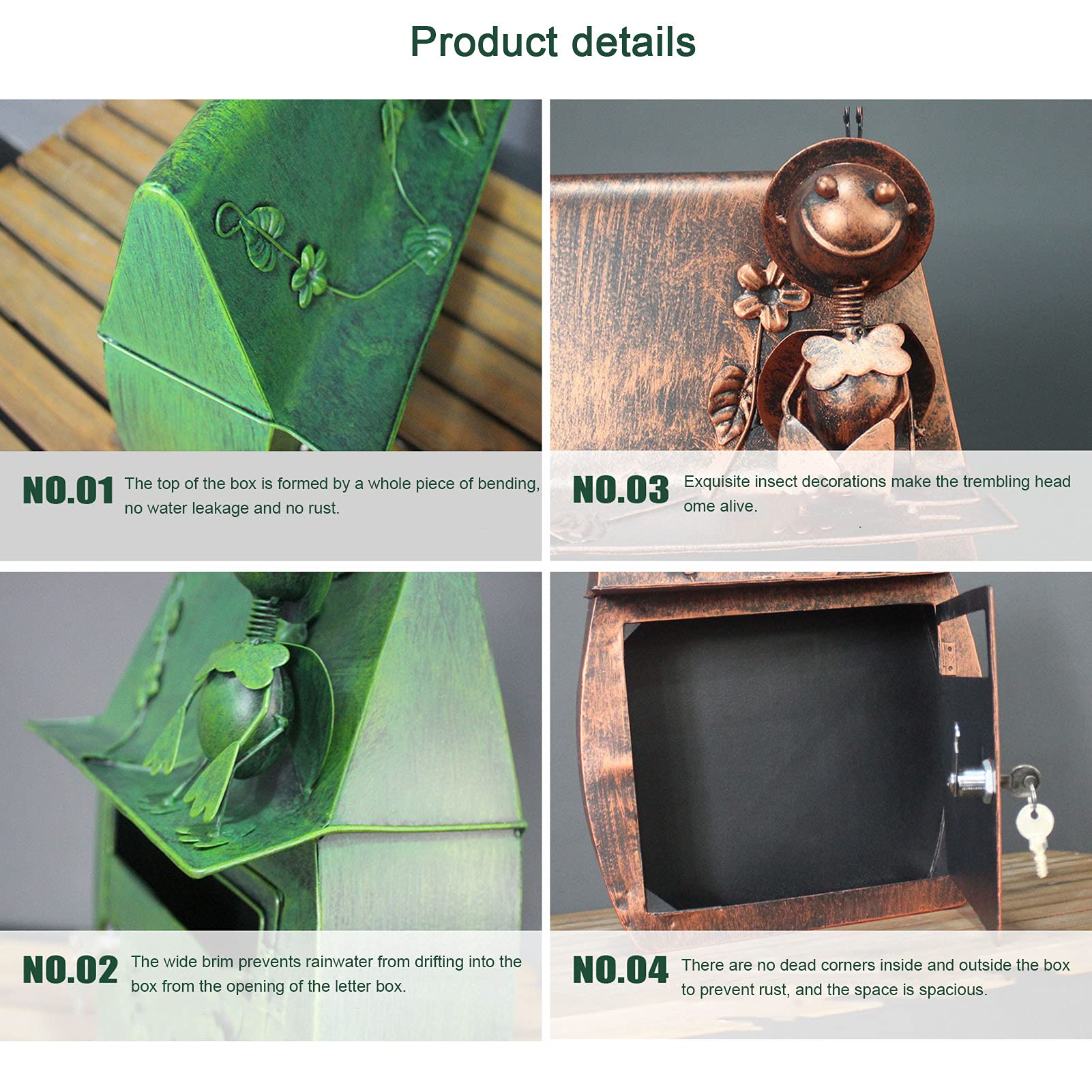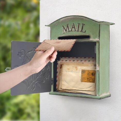 El paquete incluyó 1* Buzón de pared Tamaño del paquete: 27., 5*11., 7*35., 5cm/10., 82*4., 6*13., 77inch Techo: Un techo sobre la parte superior del buzón protege su correo del contacto directo con la lluvia. 【Fácil de limpiar】: Su superficie está pintada a pistola, que es resistente al polvo y el óxido, y se puede limpiar fácilmente con un paño húmedo. Mientras tanto, la tapa hace que sea fácil para usted para abrir y cerrar este producto y puede proteger bien los artículos en el producto se moje. Descripción Si busca un buzón de pared clásico y rústico, nuestro producto es ideal para usted. Aplicación Es adecuado para colgar en la mayoría de las paredes, cobertizos, puertas o garajes para recibir correo, periódicos y cartas de consejos en diferentes lugares como casas, restaurantes, oficinas y postes., Especificaciones Color: Verde, Material: Hierro Tratamiento de superficie: Pintura en spray, Montaje requerido: No, Estilo: Rústico, Grosor: 0., 8mm/0., 031inch Buzón Correo Antiguo Tejado Buzon Vintage Buzon Verde Antiguo Buzon Retro Antiguo Buzon De Pared Buzon Verde Para Montaje En Pared Buzon Con Cerradura Vintage Buzones De Exterior 84061997 Buzón Rústico Montaje Pared Tamaño de la letra: 19., 5*1., 5cm/7., 7*0., 6inch Tipo de montaje: Montaje en pared Buzon madera vintage - - Alquiler de mobiliario y producción Colgador trasero: Los dos fuertes colgadores traseros pueden mantener el buzón estable en la pared. Está hecho de hierro robusto, pintado en spray con un verde antiguo que resiste bien la intemperie. Mide unos 27x10.5x31.2 cm, así que cabe un buen montón de... En eBay encuentras fabulosas ofertas en Buzón vintage. Encontrarás artículos nuevos o usados en Buzón vintage en eBay. Envío gratis en artículos seleccionados. Tenemos la selección más grande y las mejores ofertas en Buzón vintage. ¡Compra con confianza en eBay Detalles Cierre de seguridad: Puede ayudar a proteger sus cartas de miradas indiscretas(cerradura no incluida).