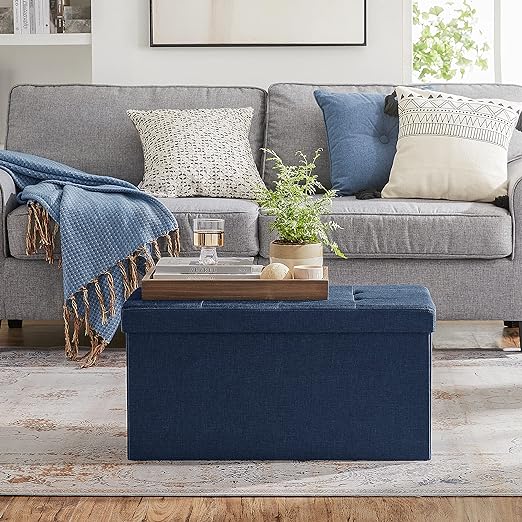 Este Producto: VidaXL Taburete Plegable Con Almacenaje Reposapiés Contenedor Cofre Extraíble Muebles Sala De Estar Salón Habitación Lino Sintético Marrón Oscuro