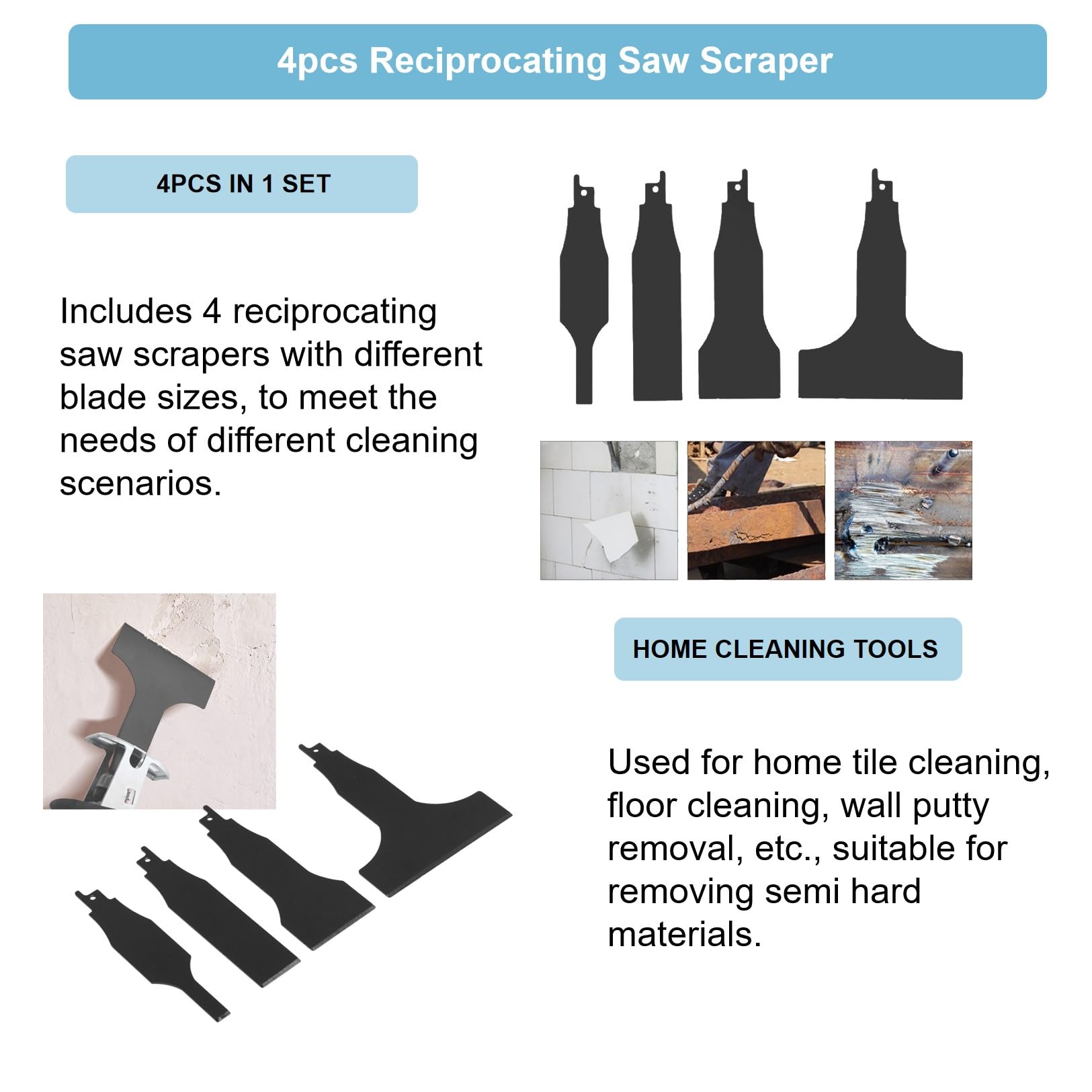 Raspador De Sierra Recíproca, Accesorio De Herramienta De Raspado De 4 Piezas Para Sierras Recíprocas, Raspador De Limpieza De Azulejos, Negro, 0.4in 1.2in, Hojas De Sierra Recíproca