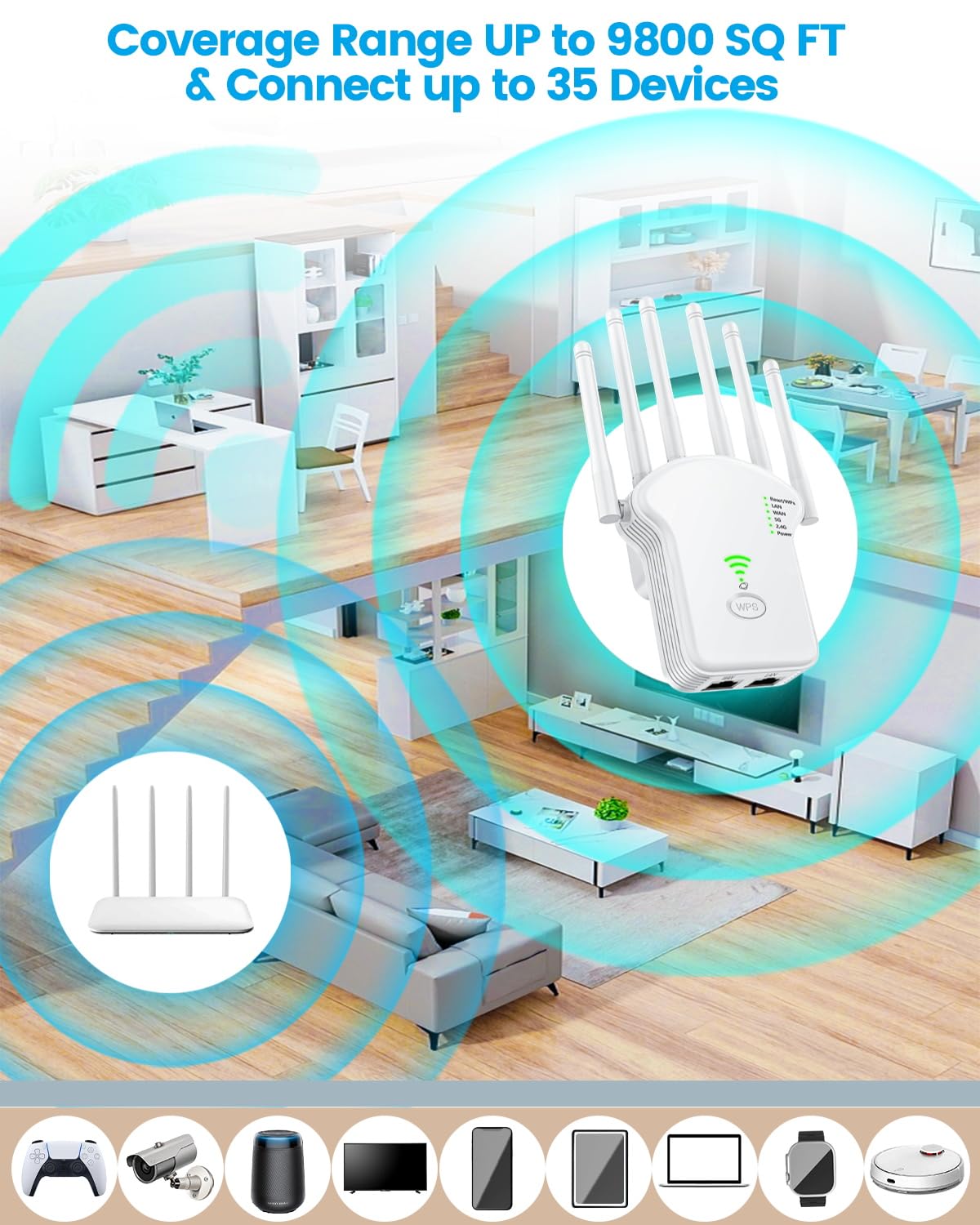 Amplificaciones de señal estables: con la tecnología de doble banda, este extensor de rango Wi-Fi ofrece hasta 1200 Mbps (2,4 GHz/300 Mbps+5 GHz/867 Mbps), aumenta la cobertura inalámbrica de Internet hasta 200㎡ y conecta hasta 35 dispositivos. Amplificador WLAN Repetidor WLAN de 1200 Mbit/S, Repetidor WiFi de Banda Dual de 5 GHz y 2,4 GHz Repetidor WiFi, amplificador WiFi Ultraxtended 1200 Mbps, WPS 1 Touch, configuración de 2,4 GHz + 5 GHz con puerto LAN, alcance de hasta 200 m², compatible con Alexa, cobertura estándar del 99%, alcance de hasta 200 m Envíos Gratis en el día Compre Repetidor De Senal Wifi 1200 Mbps en cuotas sin interés! Conozca nuestras increíbles ofertas y promociones en millones de productos Hasta dormitorios, pisos, aseo, garaje, sótano y jardín se puede disfrutar de wifi en toda la casa. Extensor WiFi Puerto LAN Repetidor WLAN De 1200 M Con Conexión LAN, Ultraxtended 5 GHz Dual Band Wlan Reforzado Wps 1 Toque Configuración Modo Ap Up 35 Dispositivos P 505840 Compatible Con Alexa Y Routers Estándar Este repetidor WiFi de pared 1200M mejora la cobertura y la velocidad en cualquier rincón del hogar. Tecnología dual band 1200M. 2.4GHz hasta 300Mbps para... La luz indicadora inteligente ayuda a instalar en un lugar óptimo. Este amplificador de internet está equipado con 4 antenas externas con alta ganancia, mayor penetración y señal sin pérdidas al pasar por la pared. 【 Después de la venta Worry Free】 30 días de prueba gratuita, servicio de garantía de 2 años (reemplazo gratuito) y soporte técnico de por vida para garantizar una experiencia de compra perfecta. Mejora la red WiFi y elimina las zonas muertas. Amplificador WiFi de 1200 Mbit/s: añade una cobertura Wi-Fi, proporciona una señal Wi-Fi fuerte y confiable, evita retrasos y búferes. 【Repetidor / Modo AP】 En modo punto de acceso, puede conectar el router y el extensor con un cable de red para extender la señal Wi-Fi.