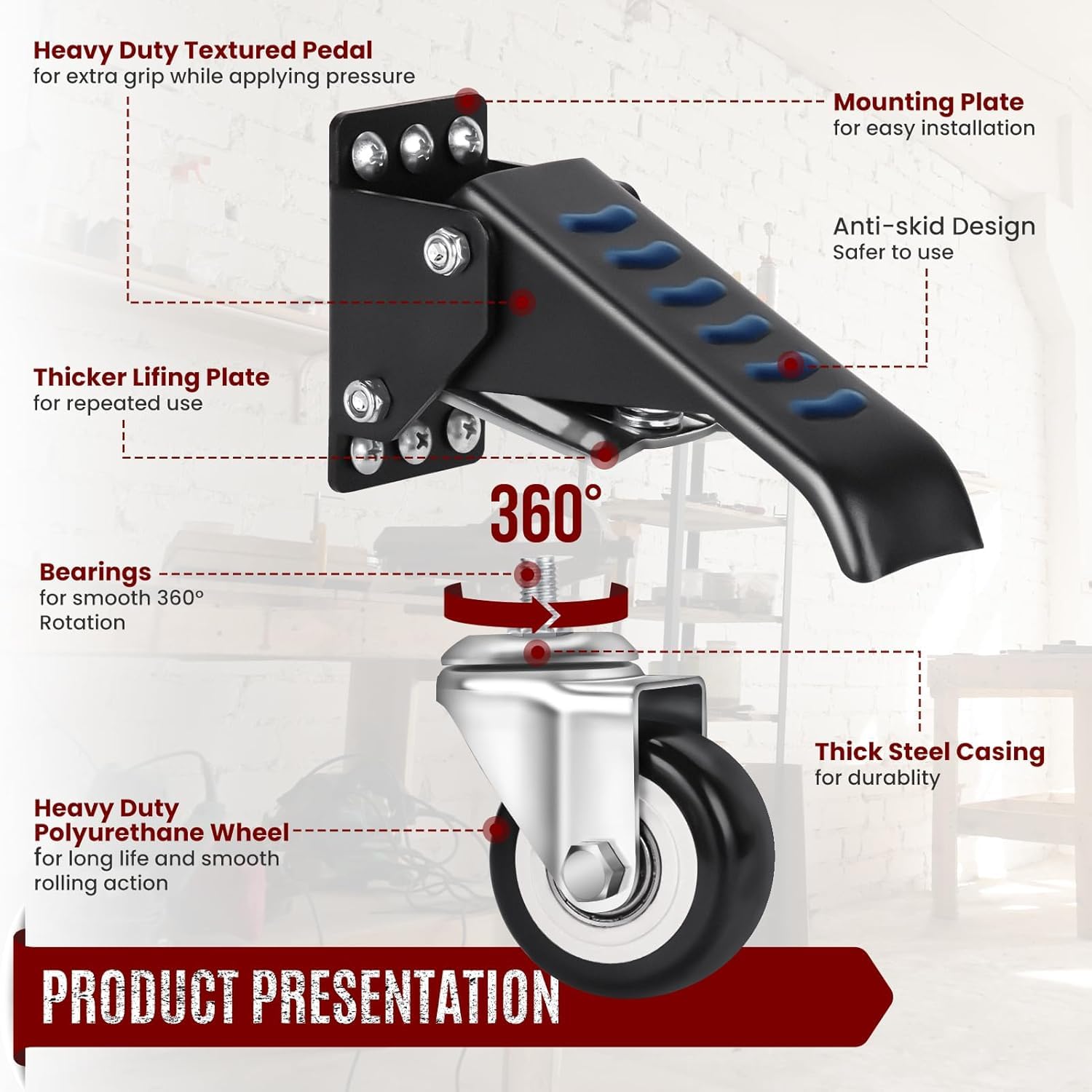 VEVOR tiene productos de alta calidad bien seleccionados entre muchos proveedores líderes. Ruedas Giratorias Industriales De Carga Juego De 4 Ruedas Nuestras ruedas de poliuretano moldeadas una sola vez no sólo lucen bien, sino que pisan suavemente. Ruedas Vevor Catálogo Ruedas Industriales VEVOR Juego De 4 Ruedas Para Banco De Trabajo Ruedas Giratorias Industriales 63,5mm Capacidad De Carga De 74,8 Kg Ruedas Retráctiles Laterales Ajustables De 360° Con Freno De Pie Para Mesa De Trabajo Ruede silenciosamente y suavemente: ¡Sumérjase en la felicidad de un diseño de rodamientos de bolas dobles! Deje que sus ruedas se deslicen tranquilamente, susurrando historias de viajes sin interrupciones. Fáciles de instalar, están listos para adornar carros, muebles grandes, bancos de trabajo grandes, gabinetes de herramientas, carretillas de mano y mucho más., ¡Explora infinitas posibilidades! Muévete como el viento: Siente la libertad de una rotación de 360°. Cada movimiento es una señal de elegancia. Está listo para ser su fiel compañero. Con rodamientos de bolas seleccionados de alta calidad, el óxido se convierte en un mito. El mundo es su patio de recreo: Desde hogares, oficinas y estudios hasta fábricas, ¡nuestras ruedas industriales desempeñan muchas funciones! ¡No más rayones en el piso! Las ruedas para banco de trabajo ofrecen un rodamiento suave y silencioso, una durabilidad resistente, una rotación de 360° y un movimiento sin... Artesanía que se preocupa: Adopte una silla con ruedas que sea una obra de arte. Resistente y duradera: Una fusión de acero al carbono engrosado y galvanoplastia de primer nivel, nuestra rueda resistente muestra su fuerza con orgullo., ¿Durable? ¡Sí! Junto con miles de empleados motivados, VEVOR se dedica a proporcionar equipos y herramientas duraderos tanto a los aficionados al bricolaje como a los profesionales. Navega por las esquinas, gira y gira con gracia. Más información del producto La gama de ruedas giratorias de ofrece durabilidad y movimiento suave para diversas aplicaciones. Encuentre soluciones confiables para optimizar la movilidad y la estabilidad