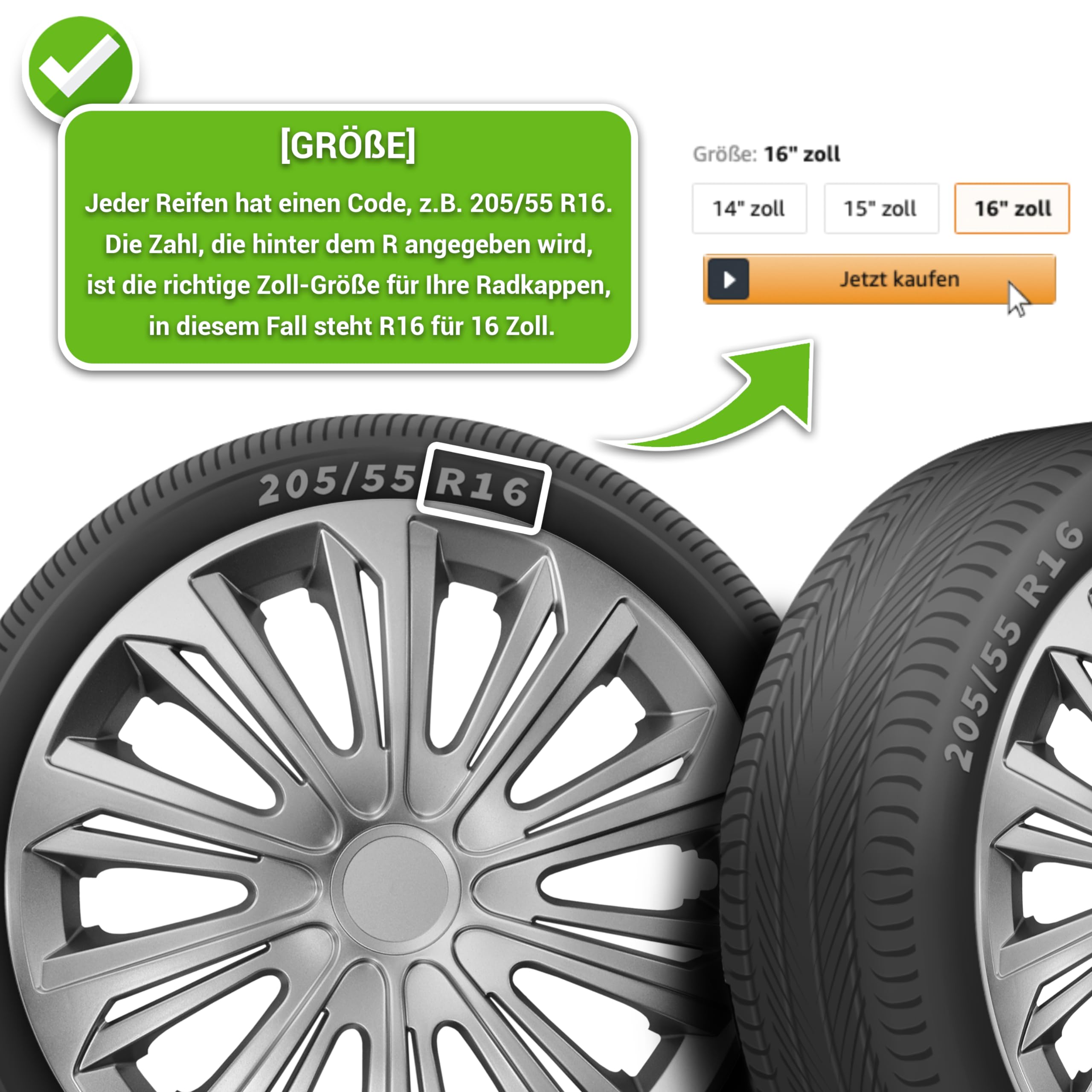 Moltico Tapacubos - Set de 4 Universale de Tapacubos - Tapacubos para Todas Ruedas de Acero - Anillo de Seguridad Ajustable - 14 Pulgada - Plata Ring ✅ [AJUSTABLE] Para que el tapacubos quede bien asentado en la llanta, el anillo metálico puede ajustarse a la llanta. El tapacubos debe estar bien sujeto a la llanta para que no se pierda durante la conducción Esto puede conducir a daños o incluso a la destrucción Incluye: Juego de 4 tapacubos, instrucciones de montaje en alemán con indicaciones de seguridad. ⁉️ La cubierta de la rueda se sujeta mal: el anillo de tensión es demasiado pequeño. ❗️La elección perfecta para mejorar visualmente el aspecto de tu vehículo. Procesamiento de plástico de alta calidad para una conducción segura. Los tapacubos son todos (4 piezas) iguales, idénticos. La elección perfecta para mejorar el aspecto visual. Tapacubos Decorativos 16 Pulgadas - Protección Para Ruedas (negro, 41.8cm). 17 €. Istanbul. Tapacubos Negros/plateados - Juego De 4 Unidades (15 Pulgadas). 17... Sigue las instrucciones de instalación adjuntas. Esto aumenta la circunferencia del anillo de sujeción. Tapacubos Moltico Negro 14 Pulgadas - Set De 4, Universal Para Llantas ✅ [TAMAÑO] El tamaño correcto se puede leer en las marcas de los neumáticos. ✅ [MONTAJE] Puedes colocar los tapacubos decorativos en la llanta de forma fácil y rápida y volver a quitarlos con la misma facilidad. Tapacubos Para Ruedas Tapacubos Plástico ABS Invierno Tapacubos Universales Moltico Grafito-negro 15 Pulgadas - Set De 4, Para Llantas De Acero, Con Anillo Ajustable Accesorio Coche Mejora Estética ¡Las etiquetas que se ofrecen para ello en Amazon encajan a la perfección! Información adicional:⭐️ Los tapacubos son todos (4 piezas) iguales, idénticos. Tras el montaje, compruebe que el tapacubos de la rueda está bien asentado y ajuste el anillo metálico si es necesario. ✅ El tamaño correcto se puede leer en las marcas de los neumáticos. No se puede eliminar. Con nuestro juego de 4 tapacubos de alta calidad y diseño dinámico, harás que tu coche sea un reclamo incluso en invierno Cada neumático tiene un código, por ejemplo, 205/55 R16., El número que sigue a la R es el tamaño en pulgadas correcto para sus llantas, en este caso - R16 para 16 pulgadas. ✅ La colocación de los tapacubos es rápida y sencilla, e igualmente fácil es quitarlos. Ponte en contacto con nosotros si tienes alguna duda. Apto para todas las llantas de acero comunes. ✅ Muy buen ajuste gracias a los prácticos sistemas de montaje.