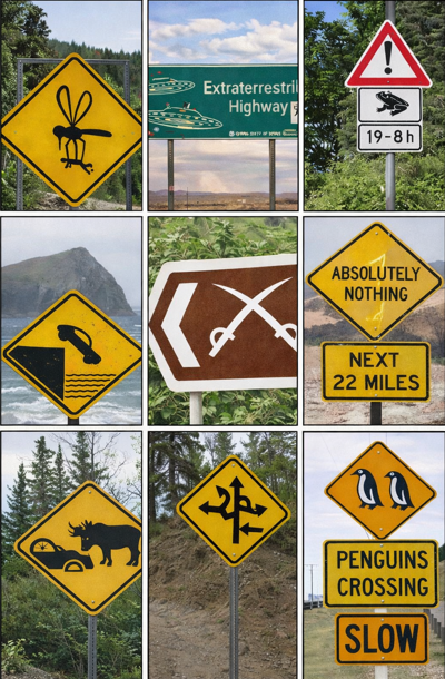 Incluso existen señales más tétricas como “cuidado con barranco”, otras demasiado sinceras que avisan que más adelante “no hay nada”, o algunas derechamente confundidas como en España, donde dos carteles no se ponen de acuerdo con la velocidad máxima.